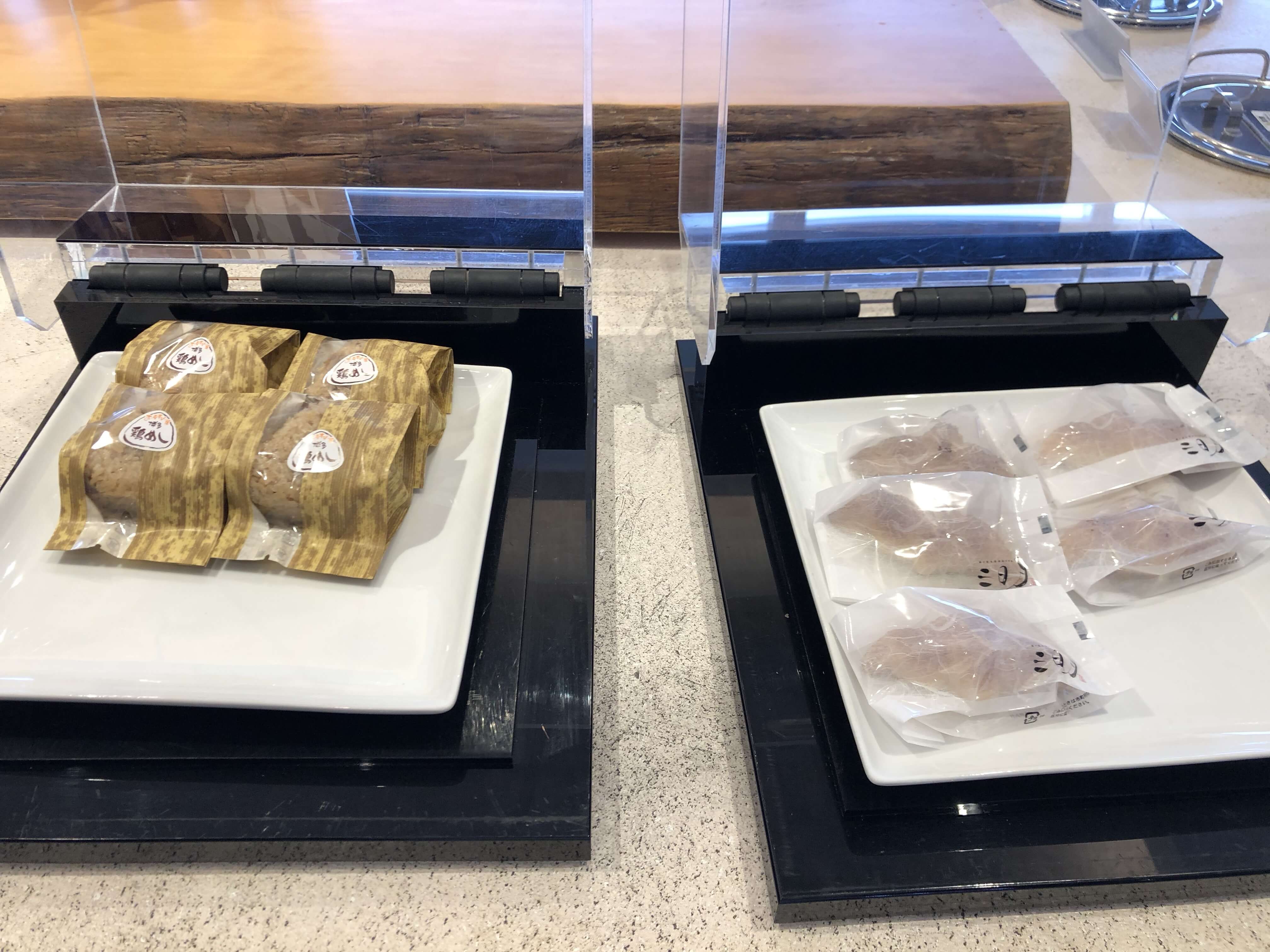 福岡のお土産を空港で買います。新商品の試食もして楽しくお買い物しました。