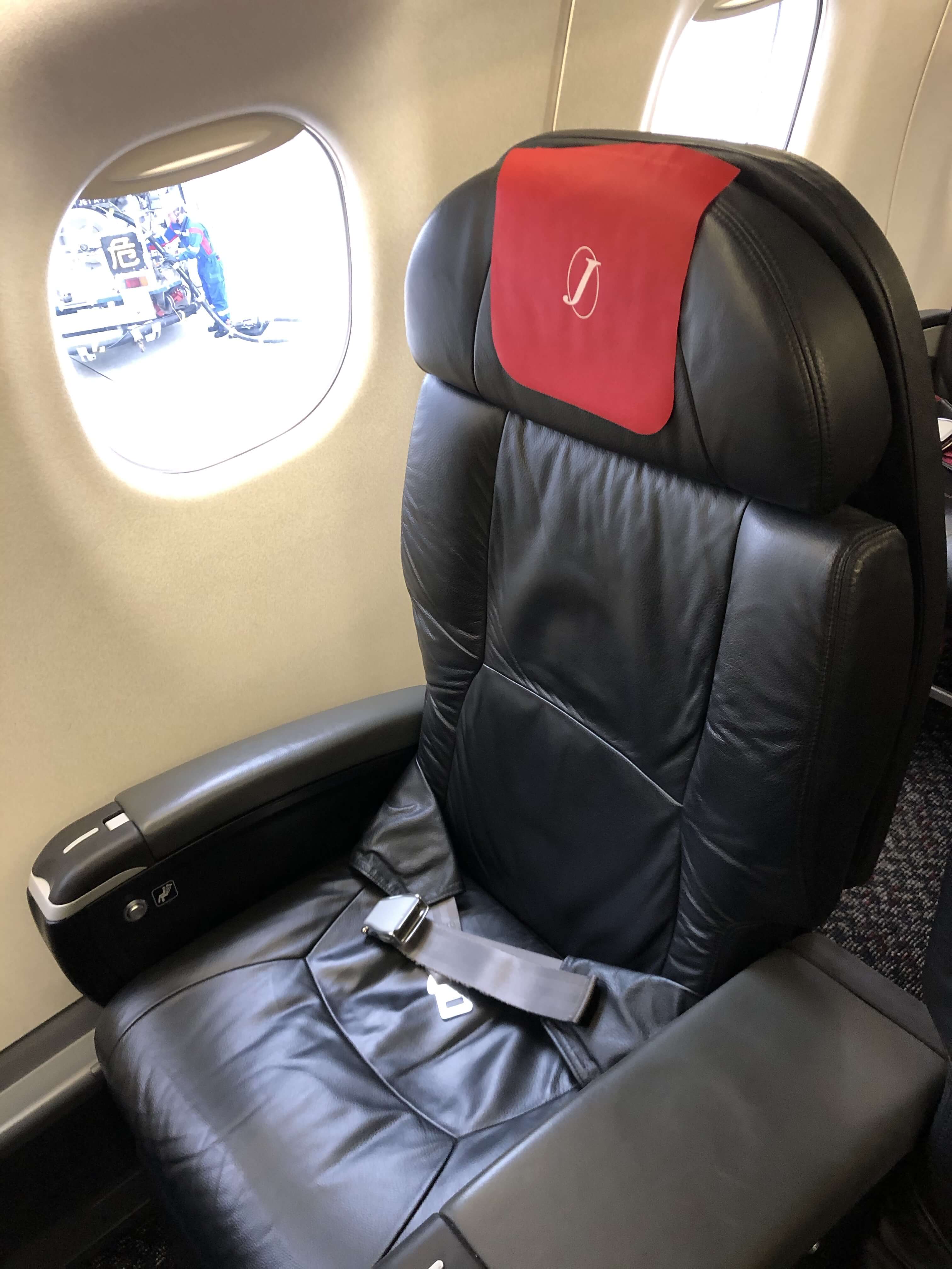 小さな飛行機ですが、クラスJは横に3列なので広いです。