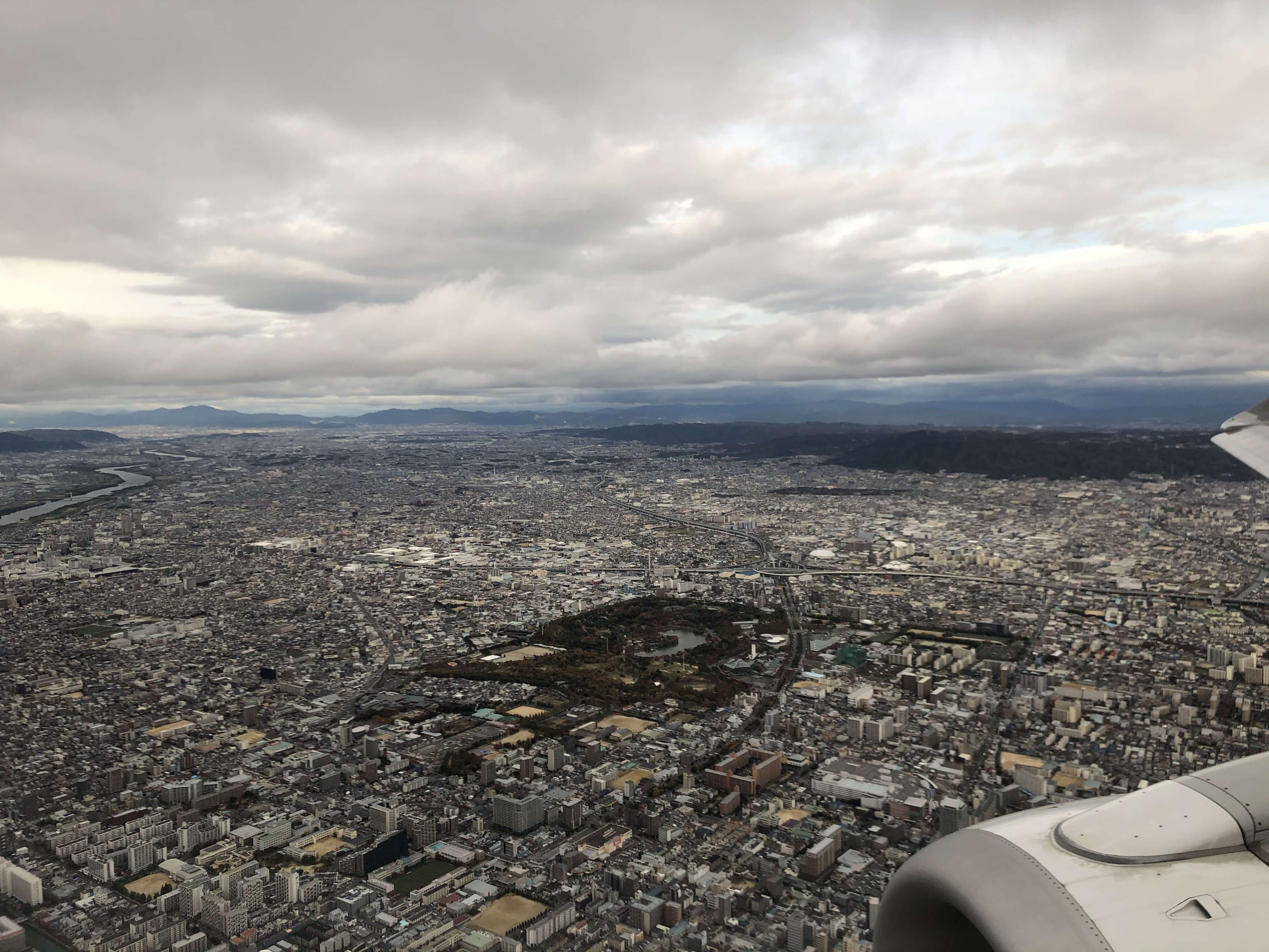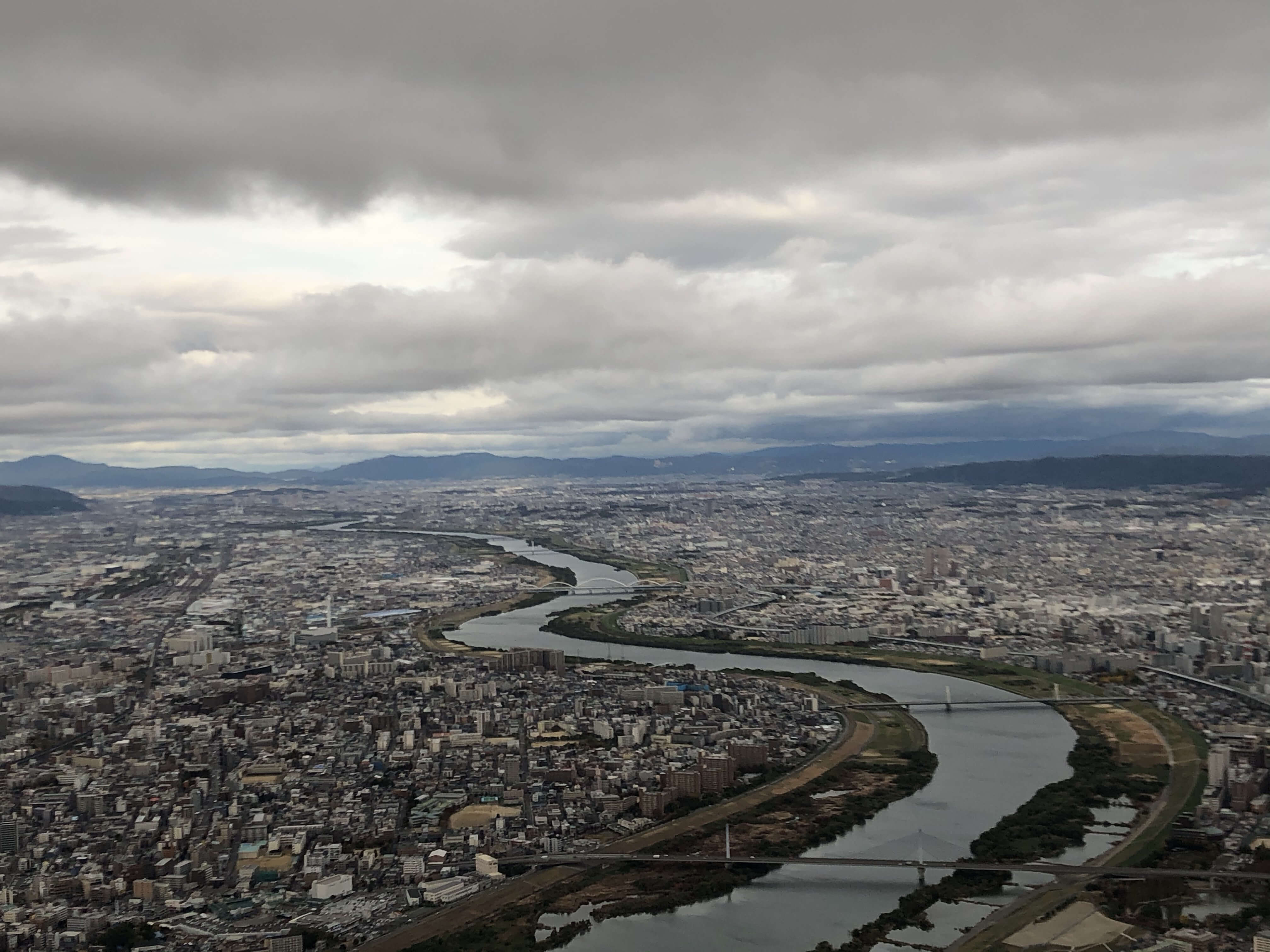 雲の下に降りて来たら大阪の景色が見えました。