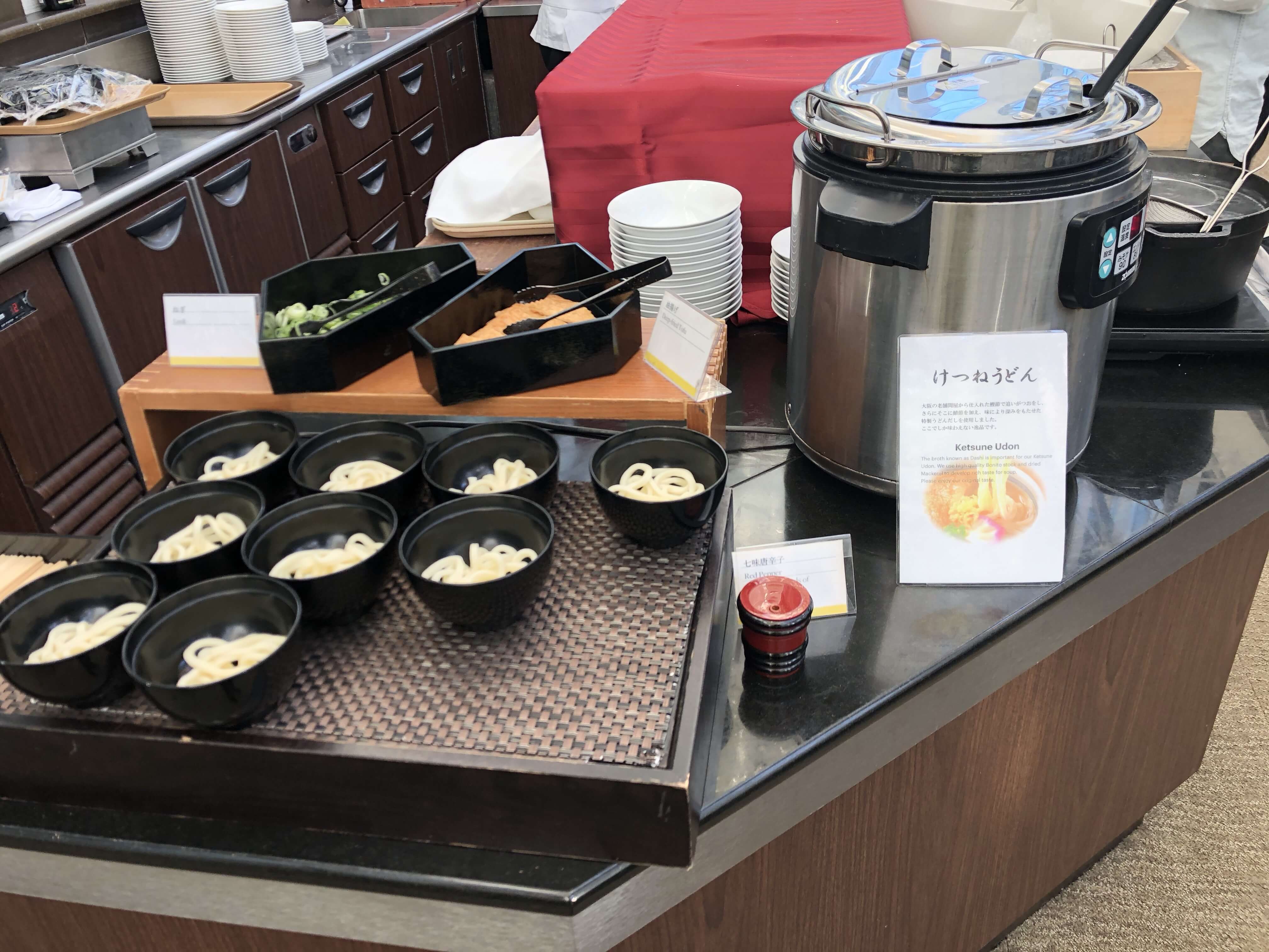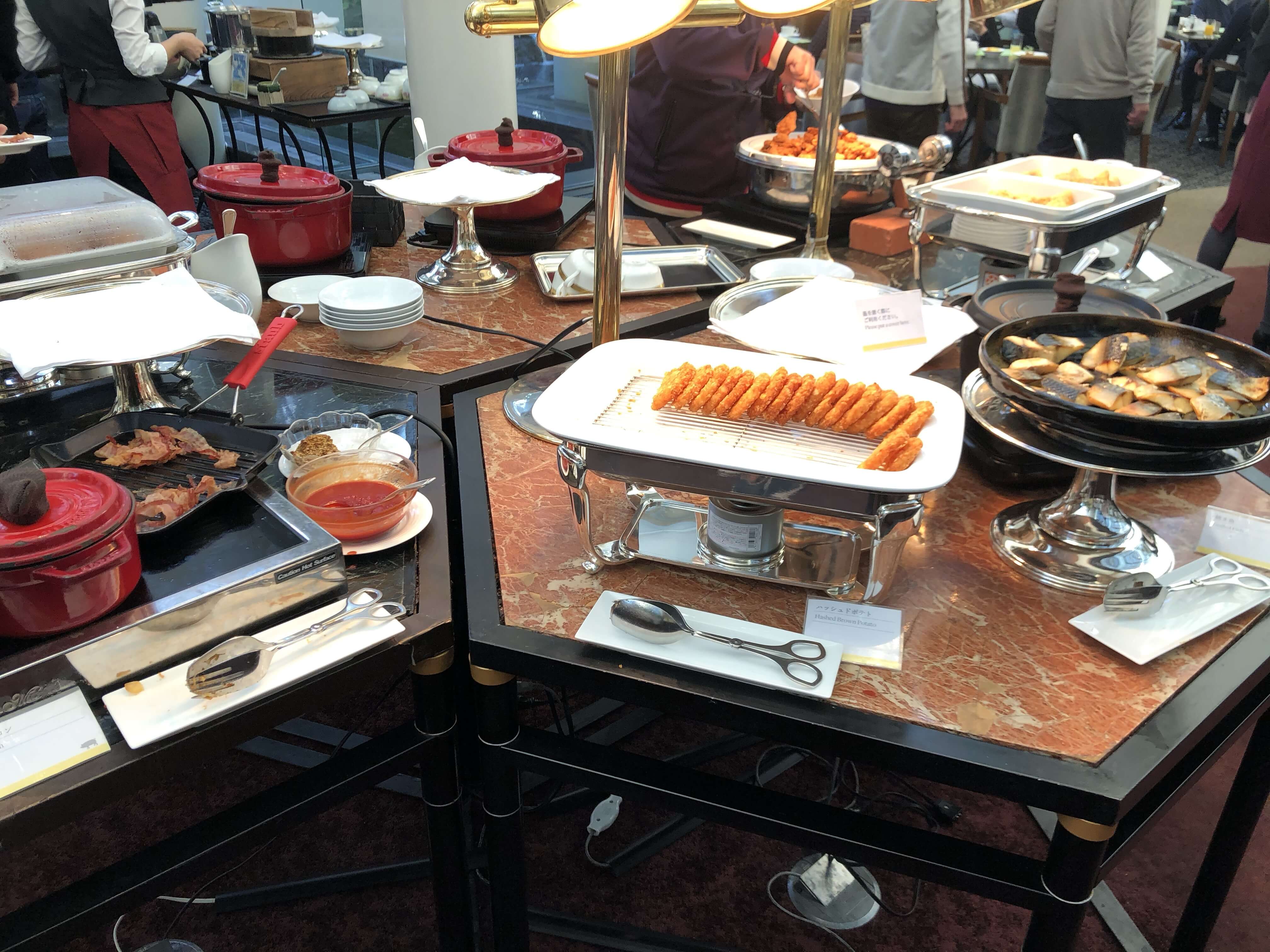 窓側の席がビュッフェ台として使われていて、一通り和食洋食が並んでいるようです。