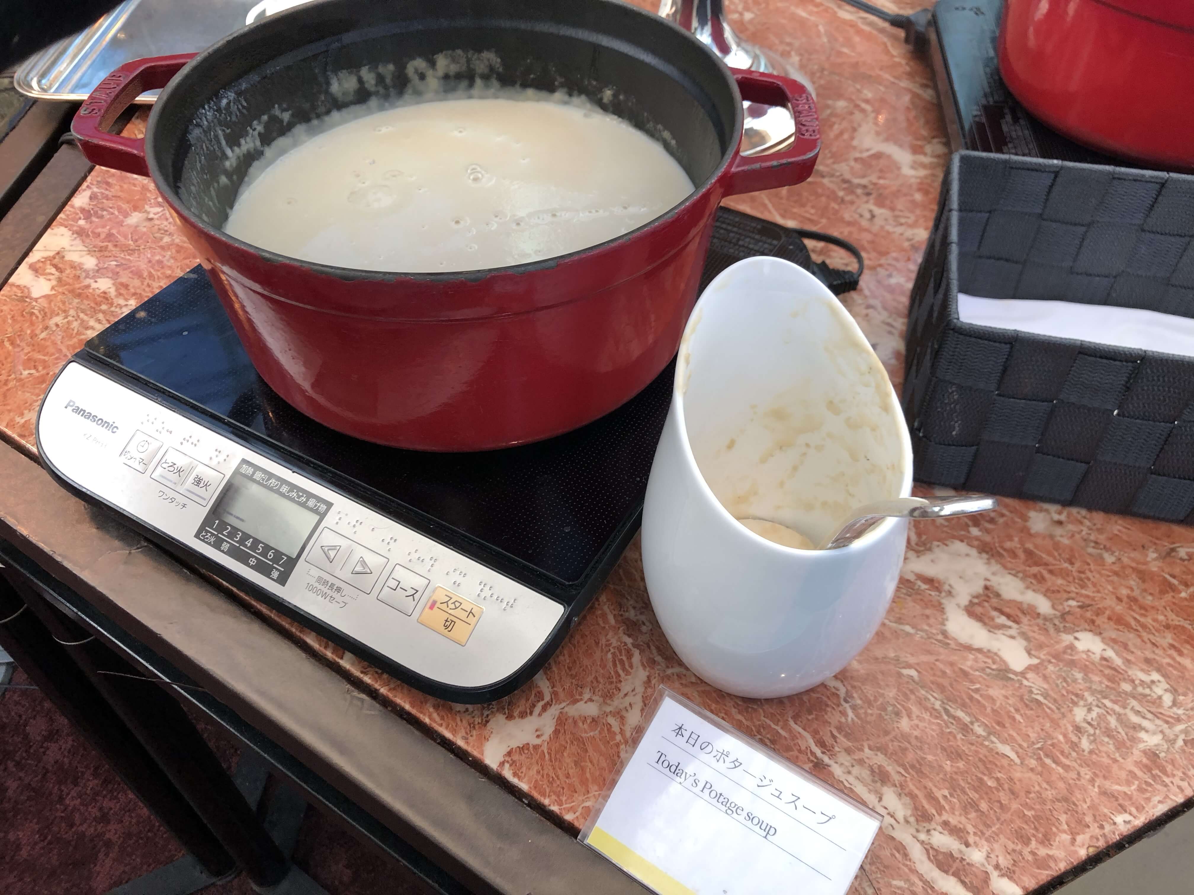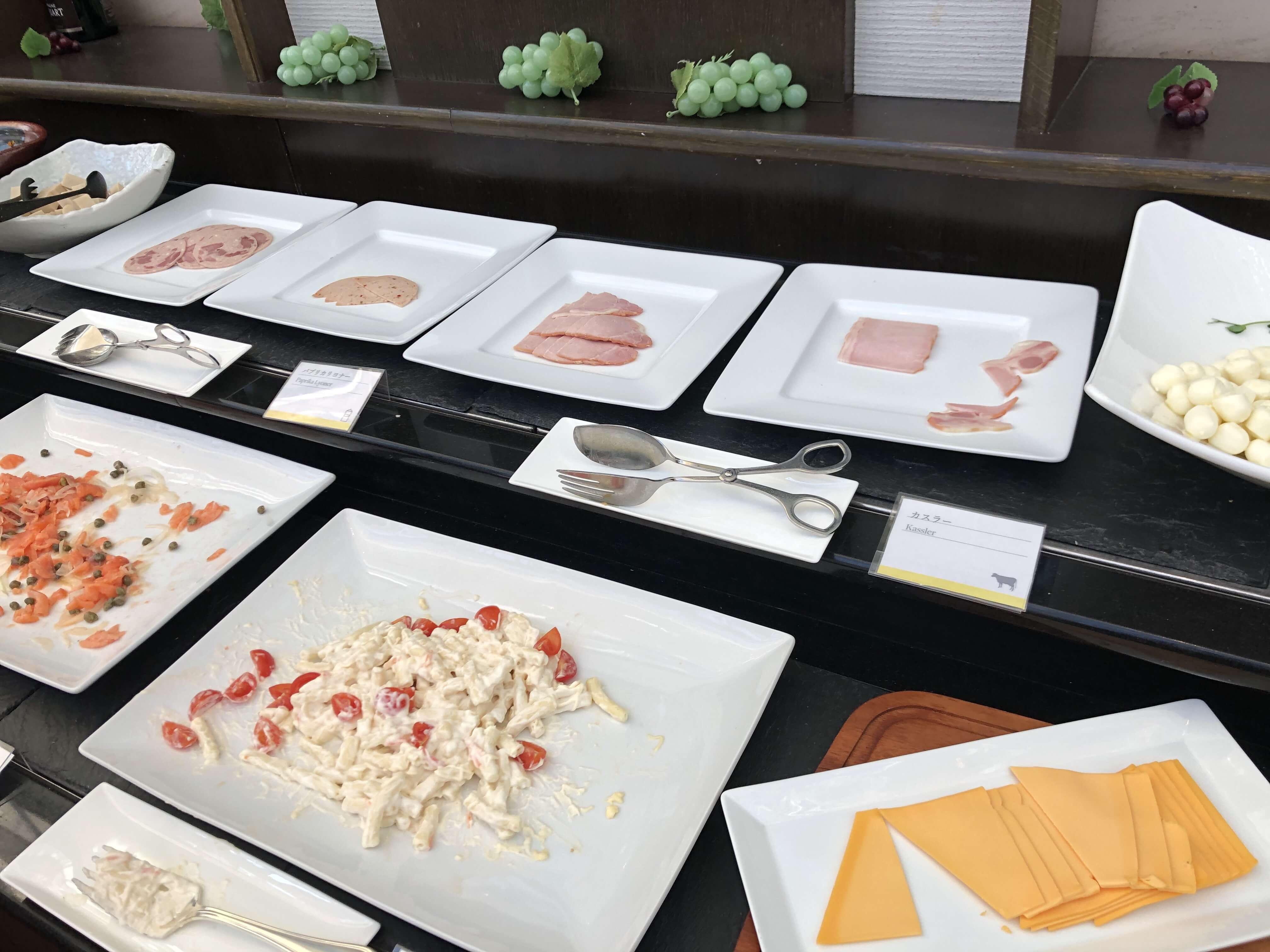 ラウンジの朝食は10時までですが、10時になる前だったので朝食が並んでいました。