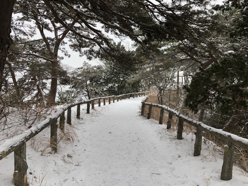 雪道を歩き島の南へ。