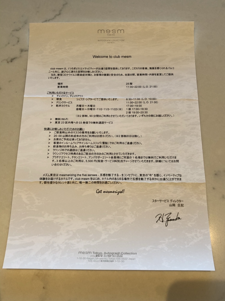 チェックイン時にホテルの案内とクラブラウンジの案内をもらいました。