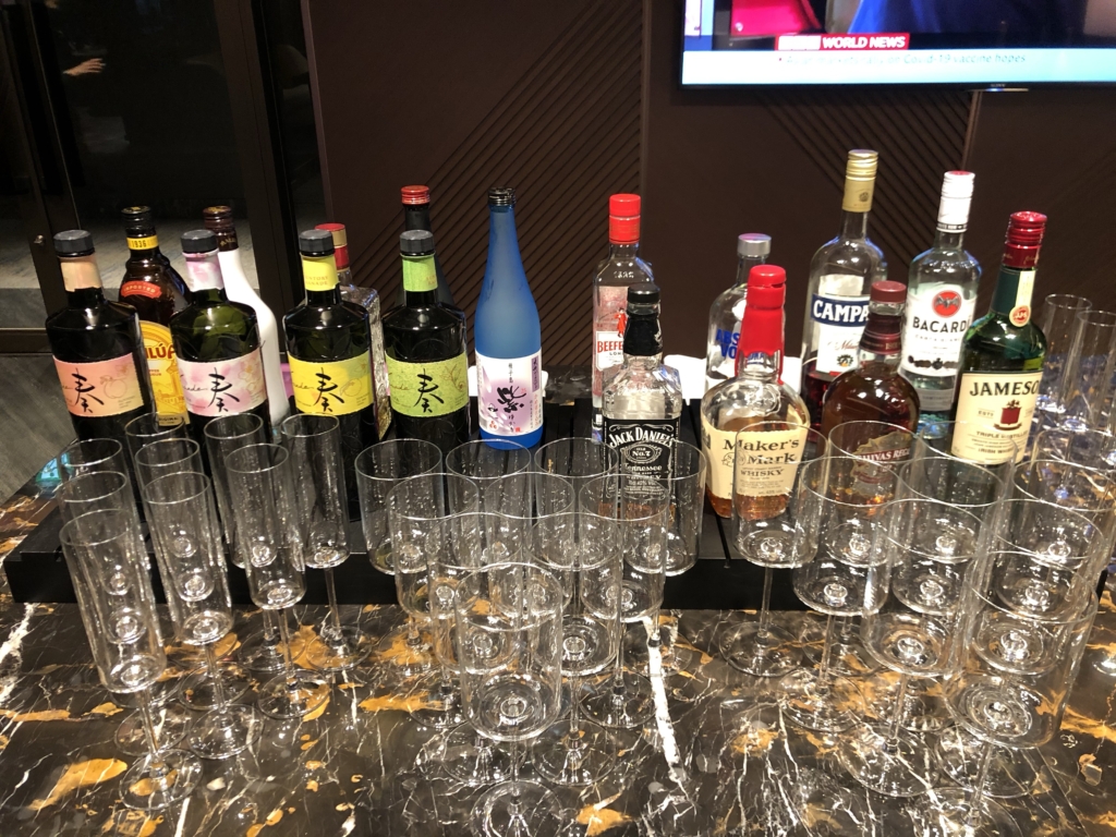 ラウンジでは乾杯カクテルに向けて準備中でした。
