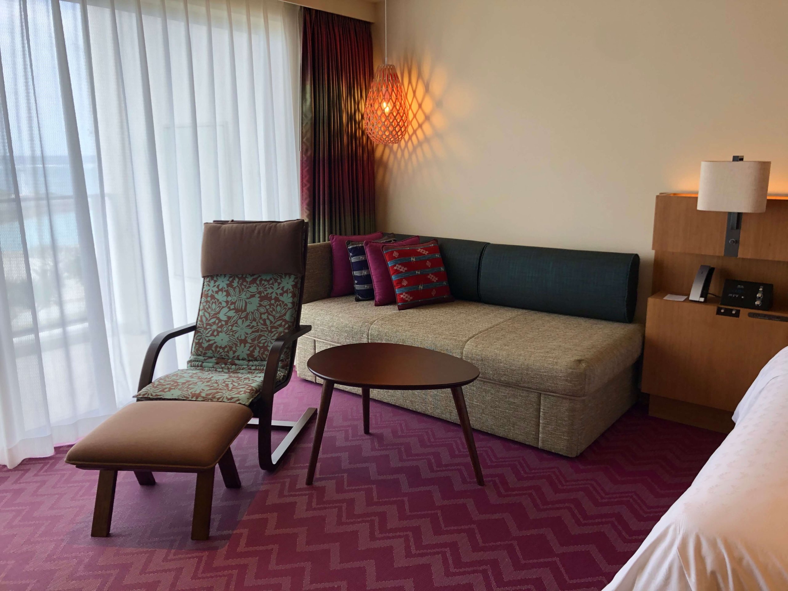 ソファーが大きくてとてもいいです。クッションカバーも沖縄らしくてかわいい。