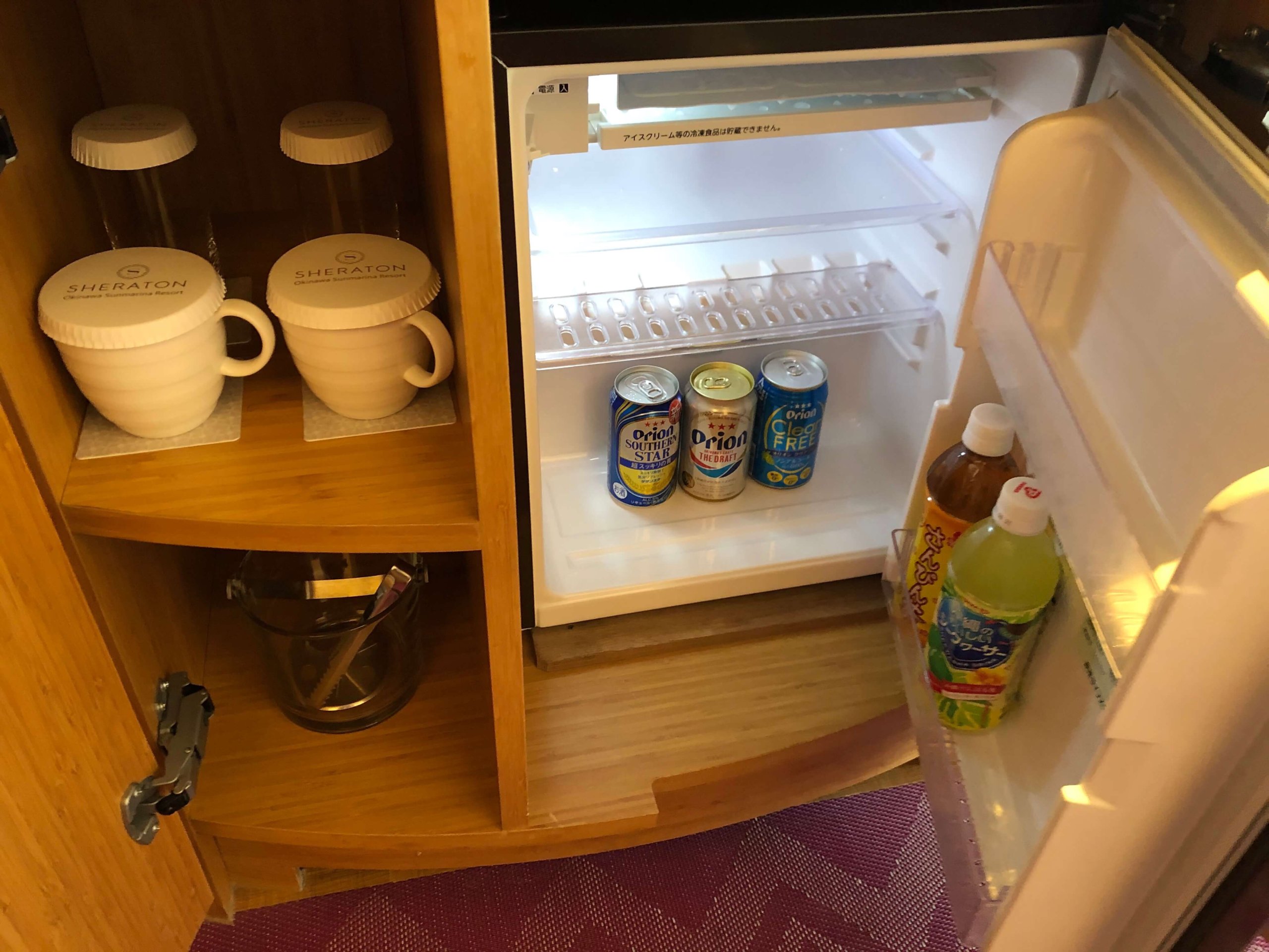 グラスやカップもたくさんありますね。冷蔵庫にはドリンクが入っていました。