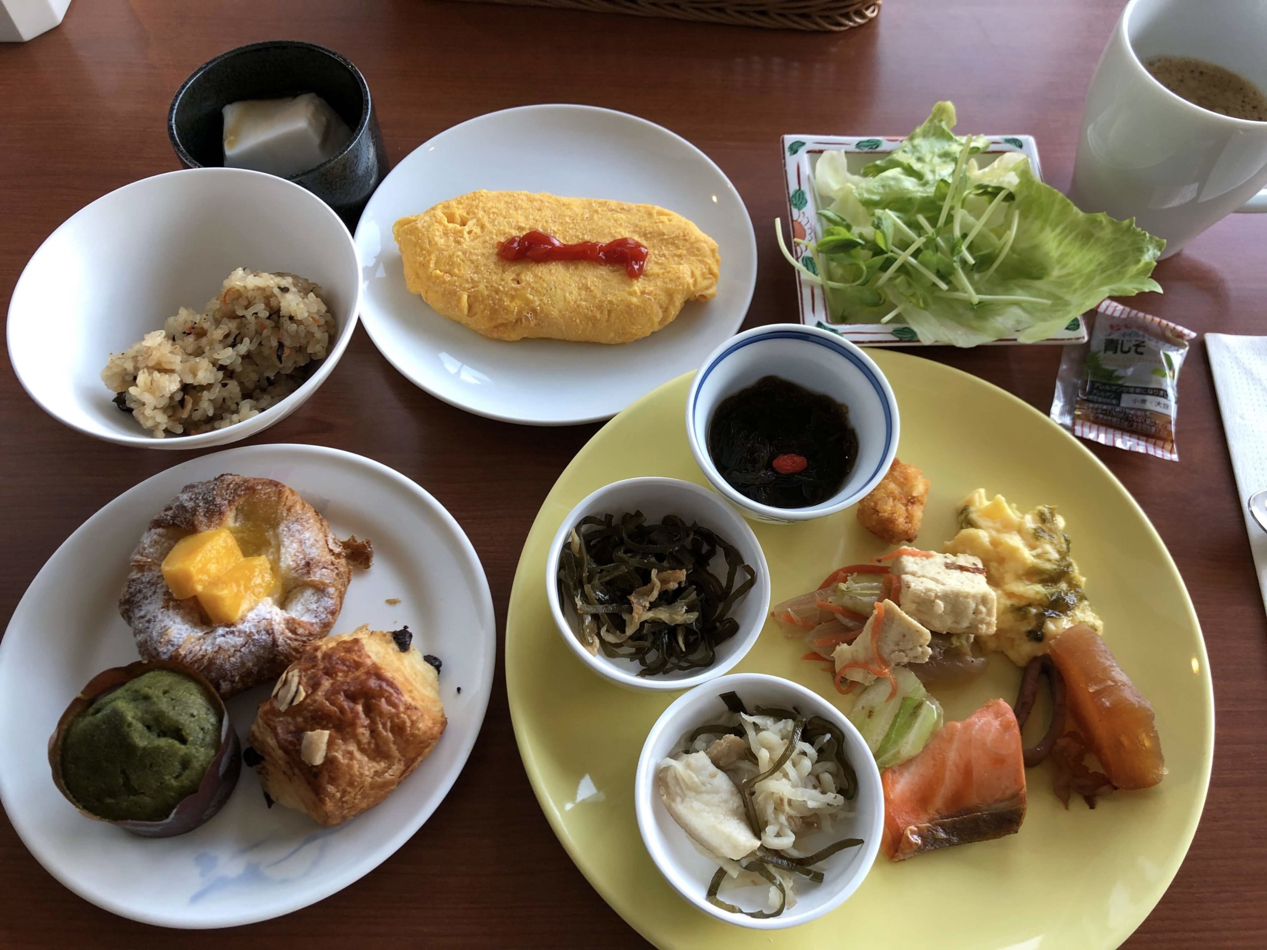 こちらにはじゅーしー、納豆、お味噌汁等和食が並びます。