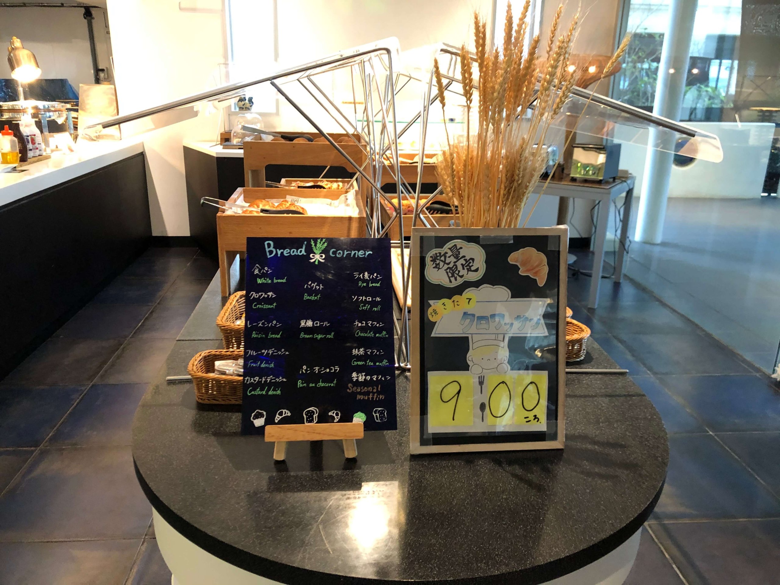 クロワッサンが焼ける時間が書いてありました。「数量限定」なのでお早めに。