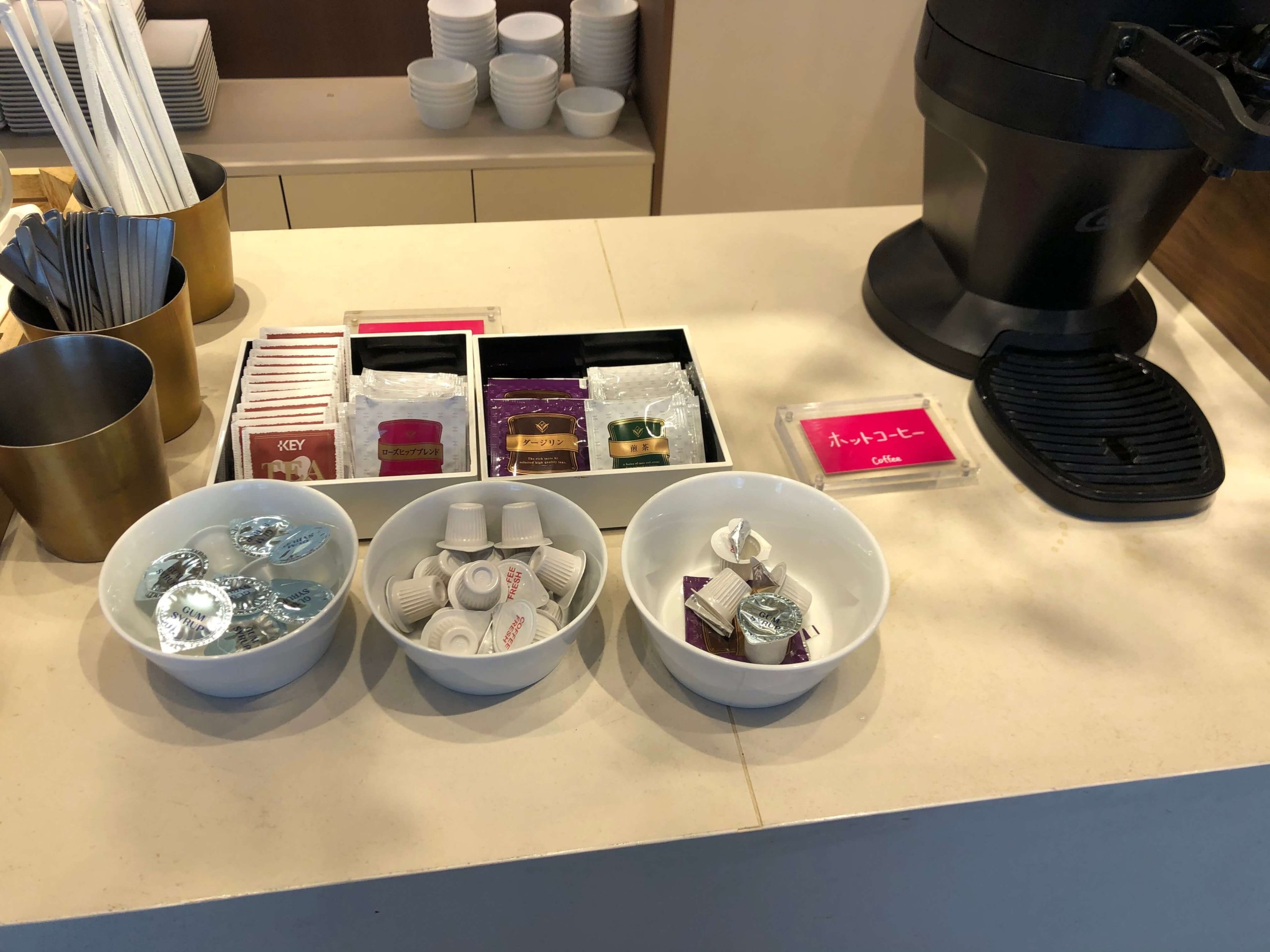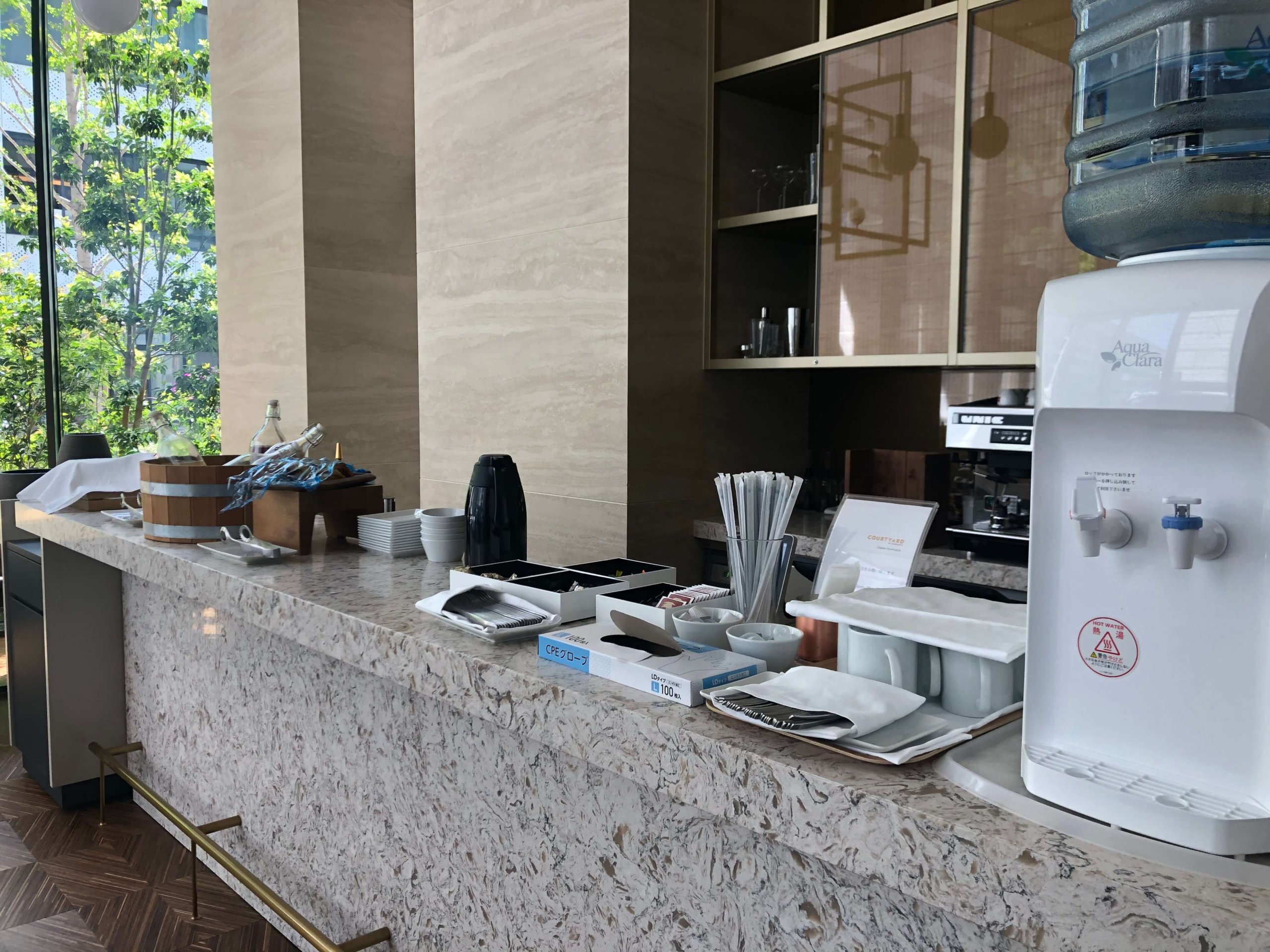 カウンターに自由に飲めるようにドリンクを並べてくれています。