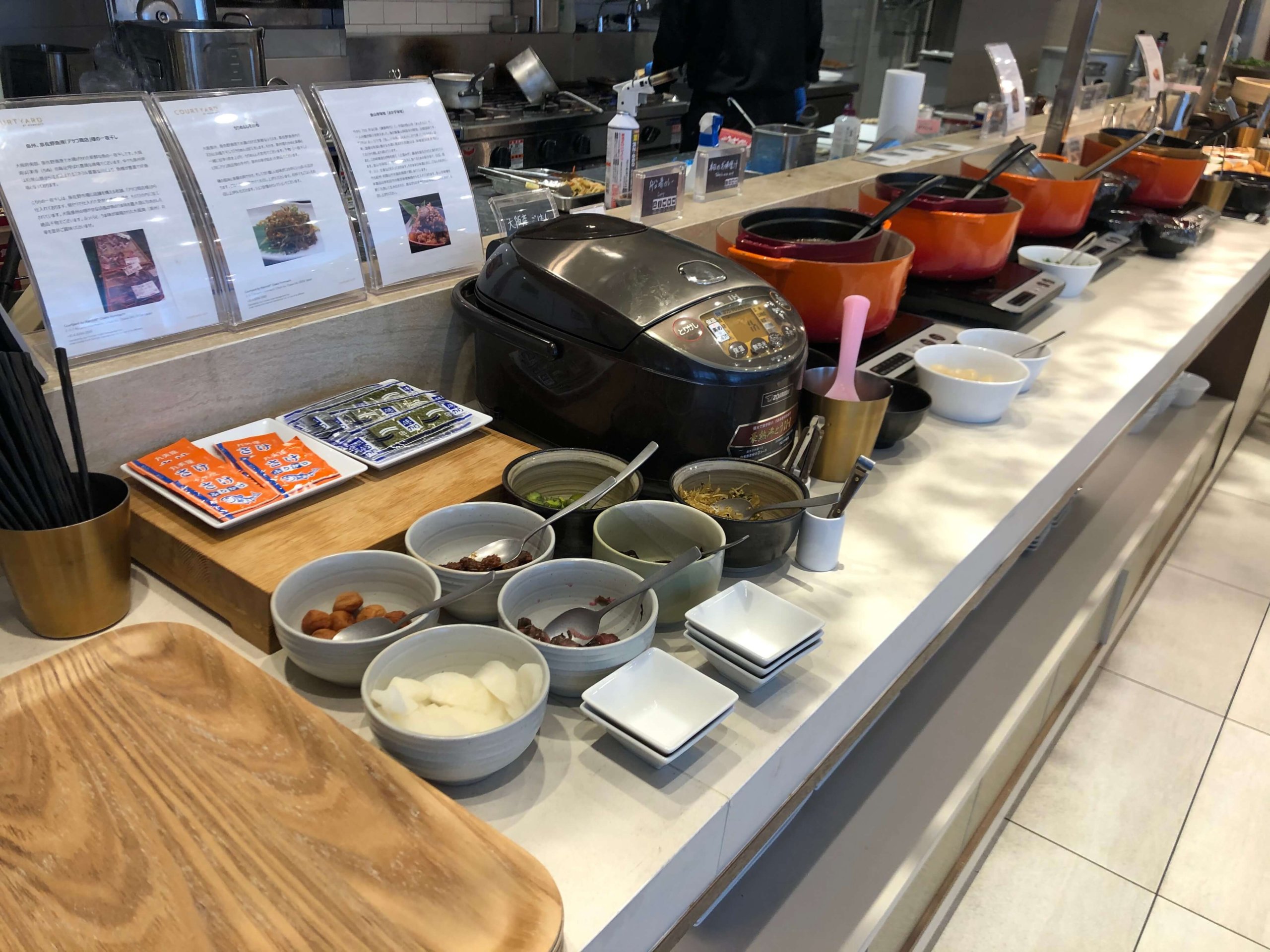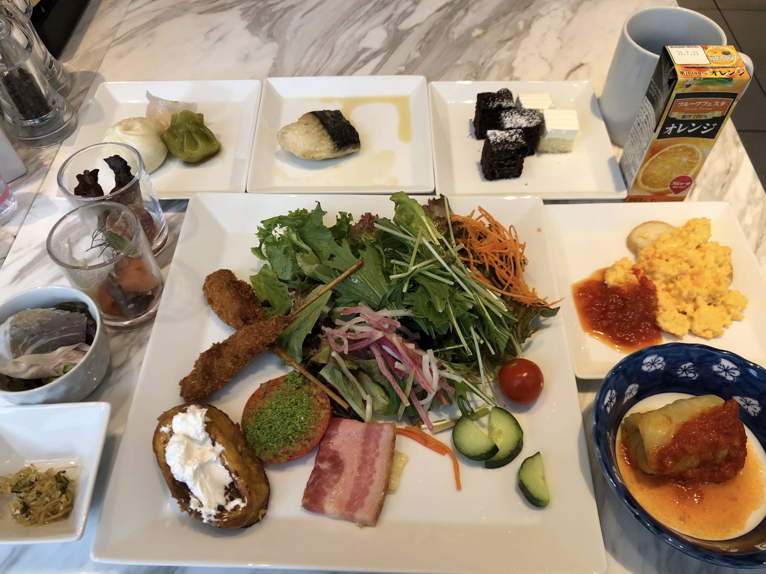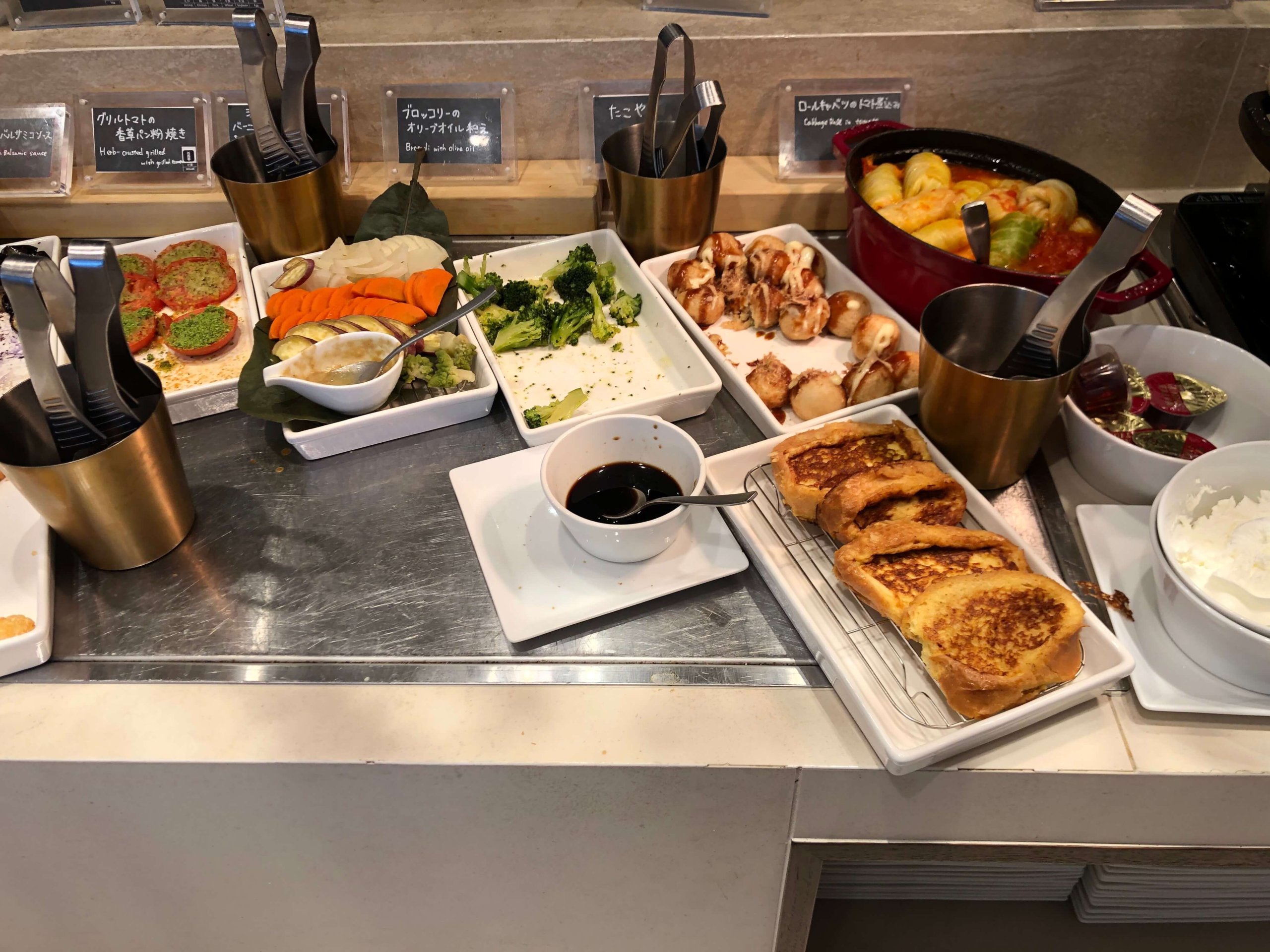 右側にさりげなく写っているのは和のおかず。こういうのもちょっとあるのがうれしい。