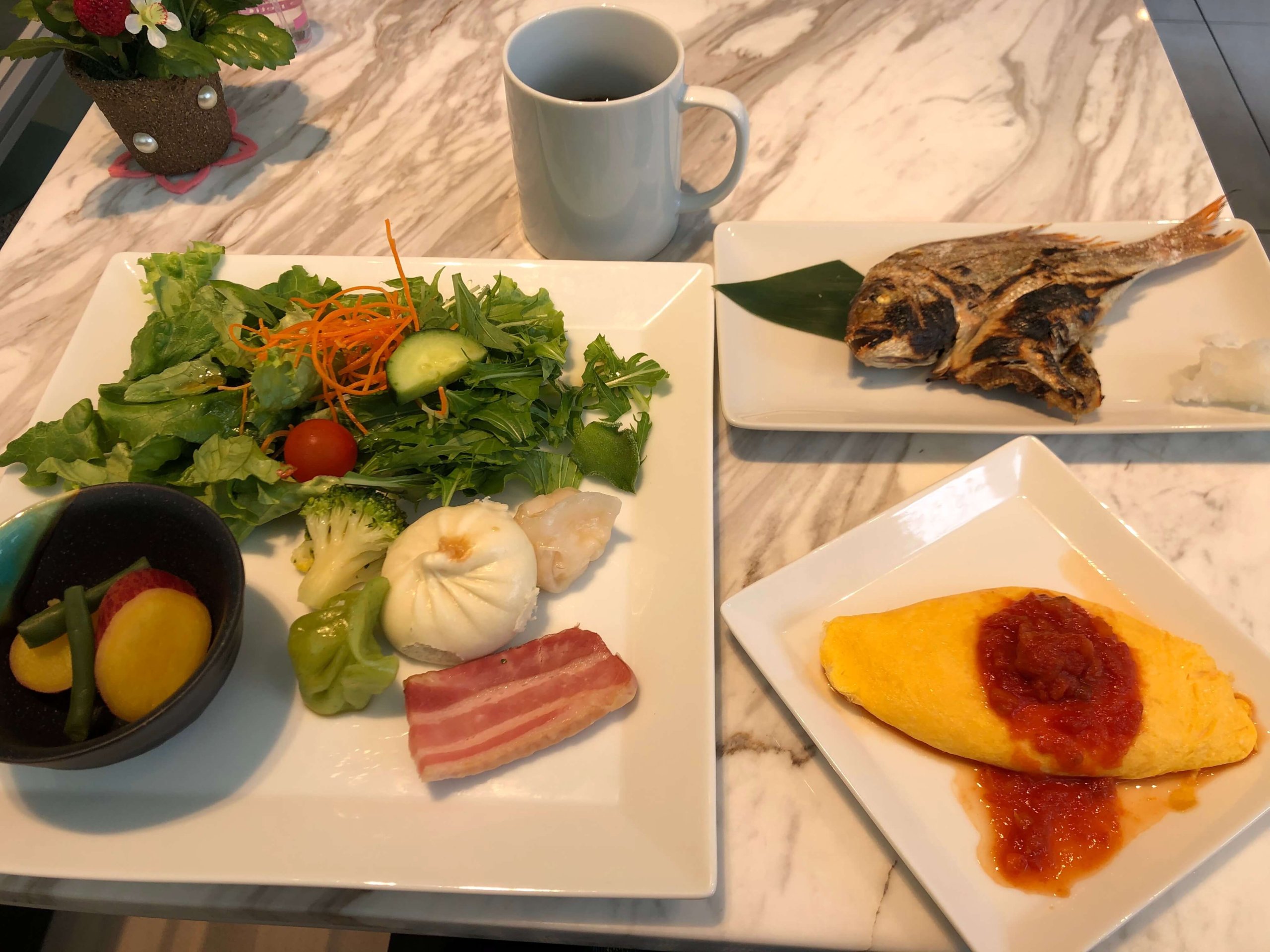 野菜も多いし、魚を焼いてくれるのがいいなと思いました。こちらの朝食おすすめですよ。