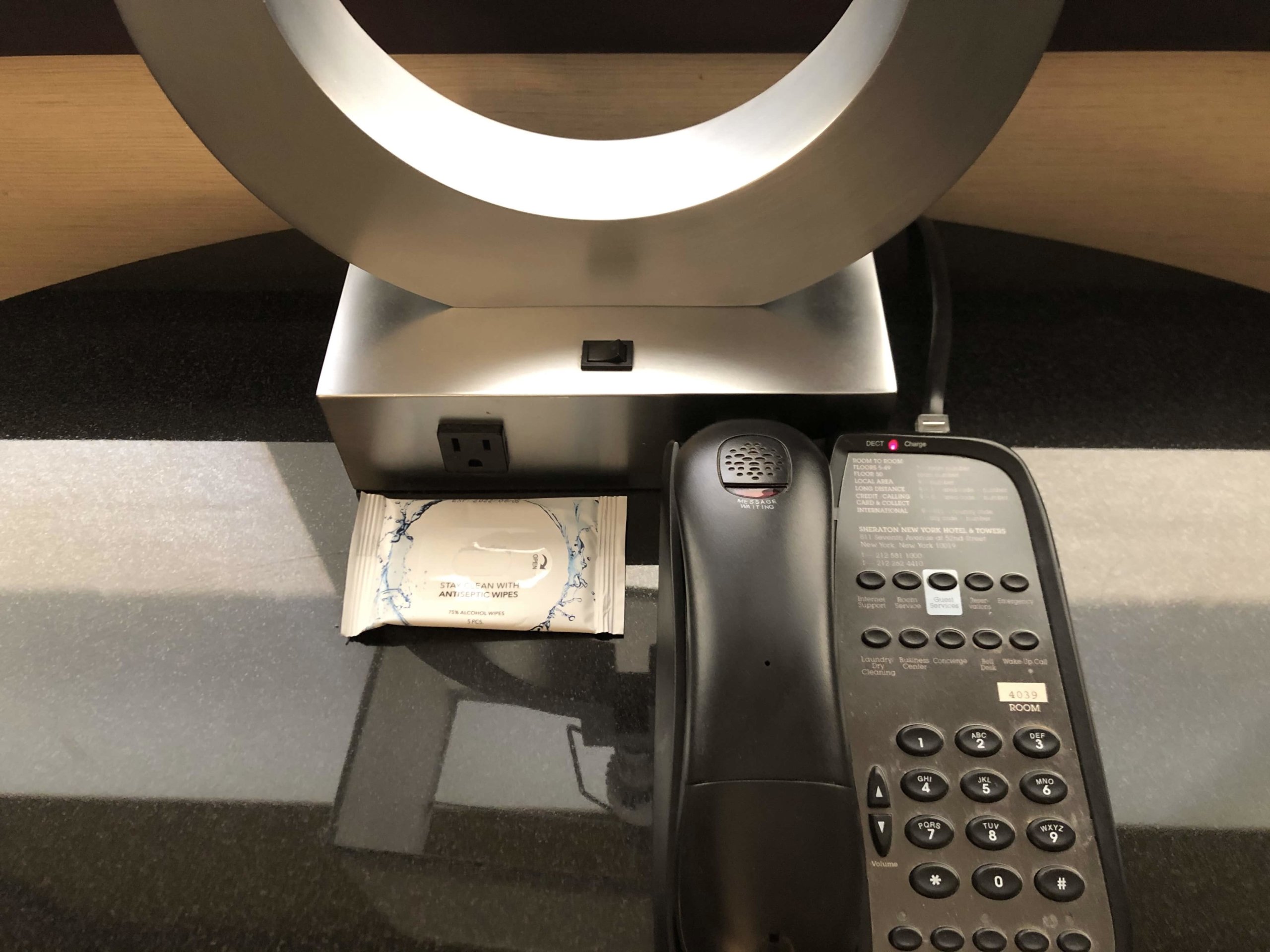 電話の横に除菌シートも置いてくれています。