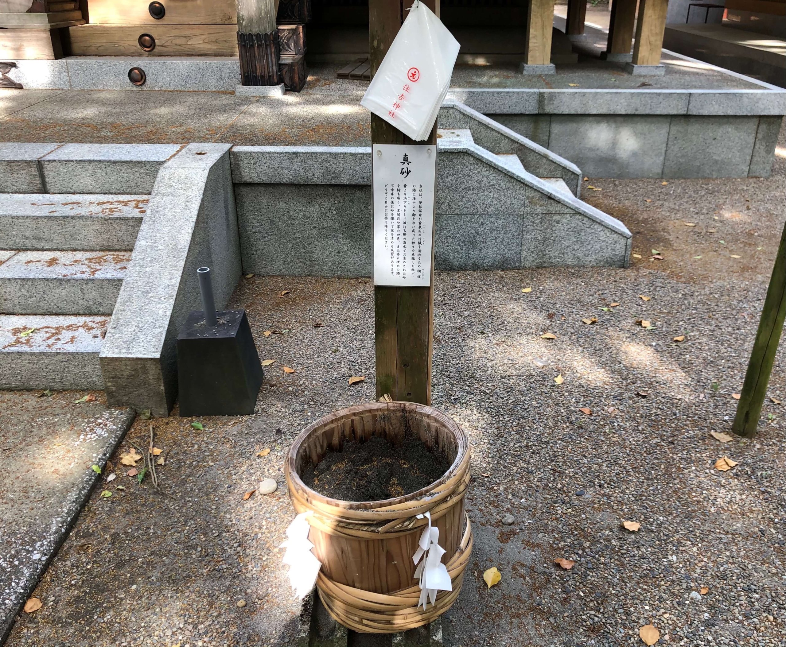 神主さんが海からとってきて清めている砂が無料でもらえます。